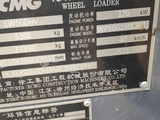 这台徐工LW500HV轮式装载机停放在中国河北省承德市,是一台2021年生产的设备。根据表显小时数显示,该装载机已运行了4300小时。通过了全面检查和评估,车况板正,可以称之为一台精品车况的装载机。