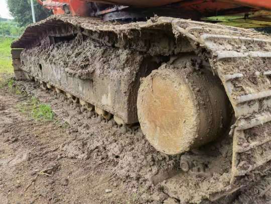 这台履带式挖掘机采用先进的液压系统和强大的动力系统,能够在各种工作条件下高效地完成挖掘、挖土和装载等任务。其配备了强大的发动机,能够提供充足的动力,使其在挖掘作业中具有出色的爬坡能力和挖掘力。
